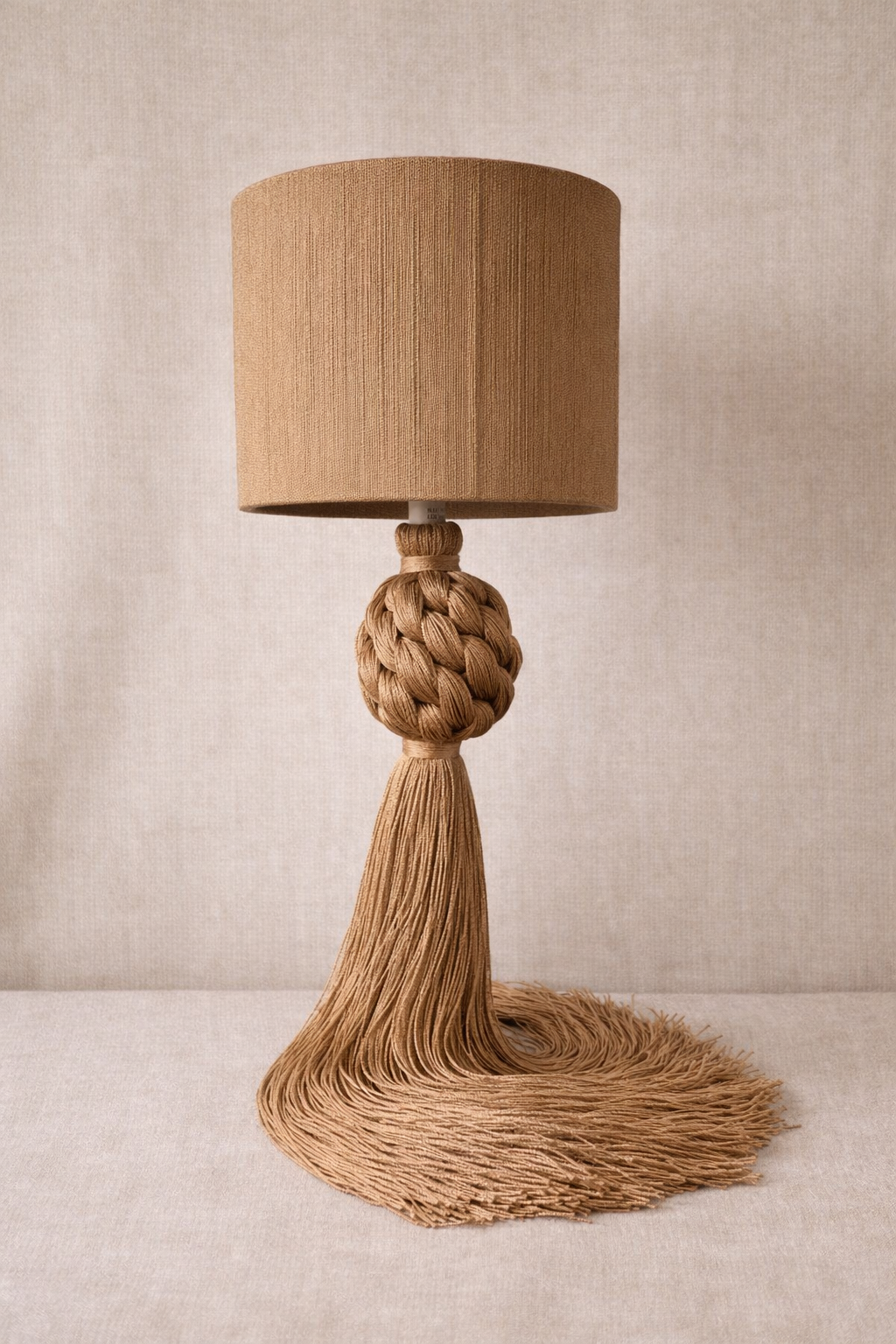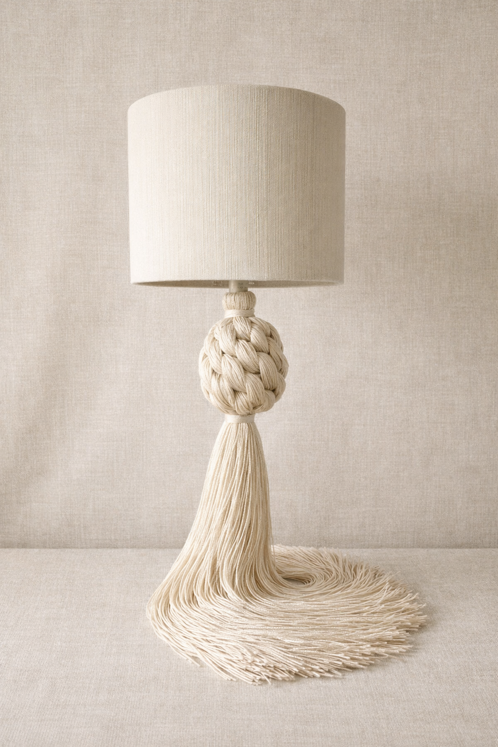 Inspirada en las formas naturales de las dunas del Mediterráneo, su trenzado artesanal y el movimiento orgánico de los flecos aportan ligereza, calma y carácter.
