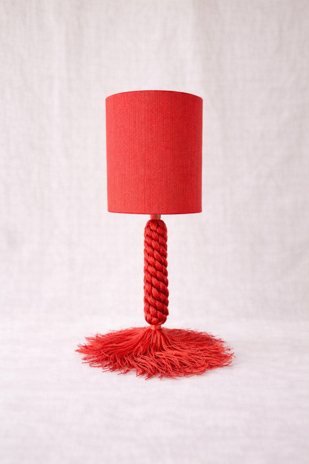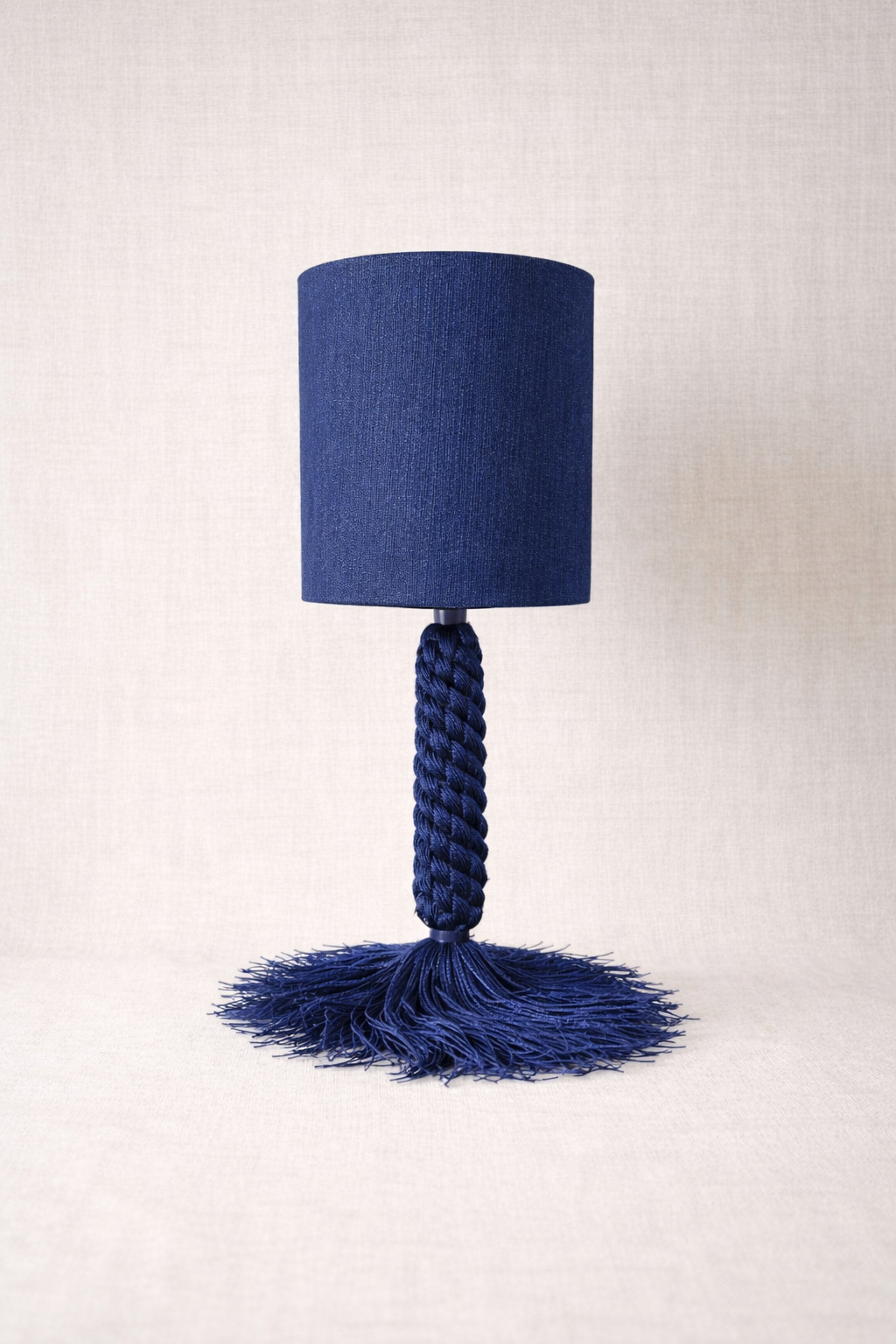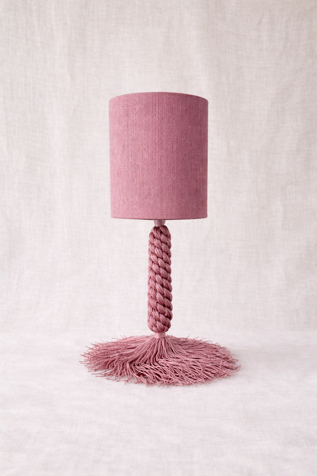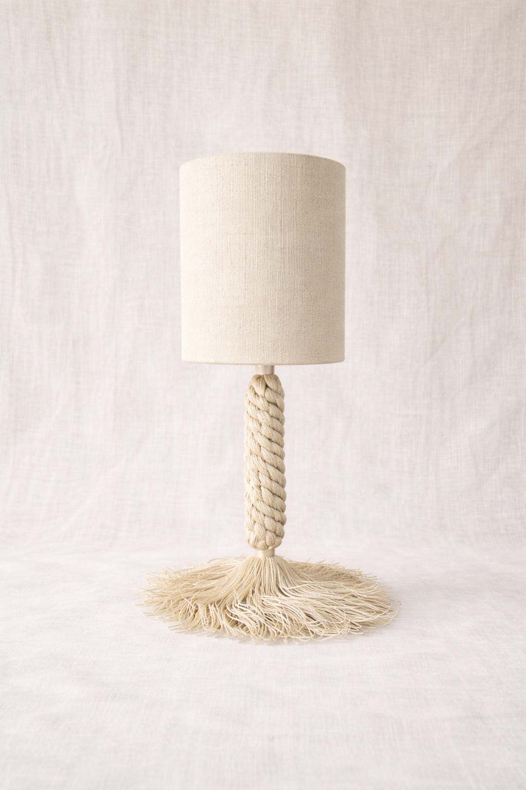 Inspirada en los pinos de los bosques mediterráneos, Pinea evoca la verticalidad de los troncos y la textura orgánica de las piñas. Su trenzado artesanal y el movimiento natural de los flecos aportan solidez visual, calma y un carácter profundamente natural.